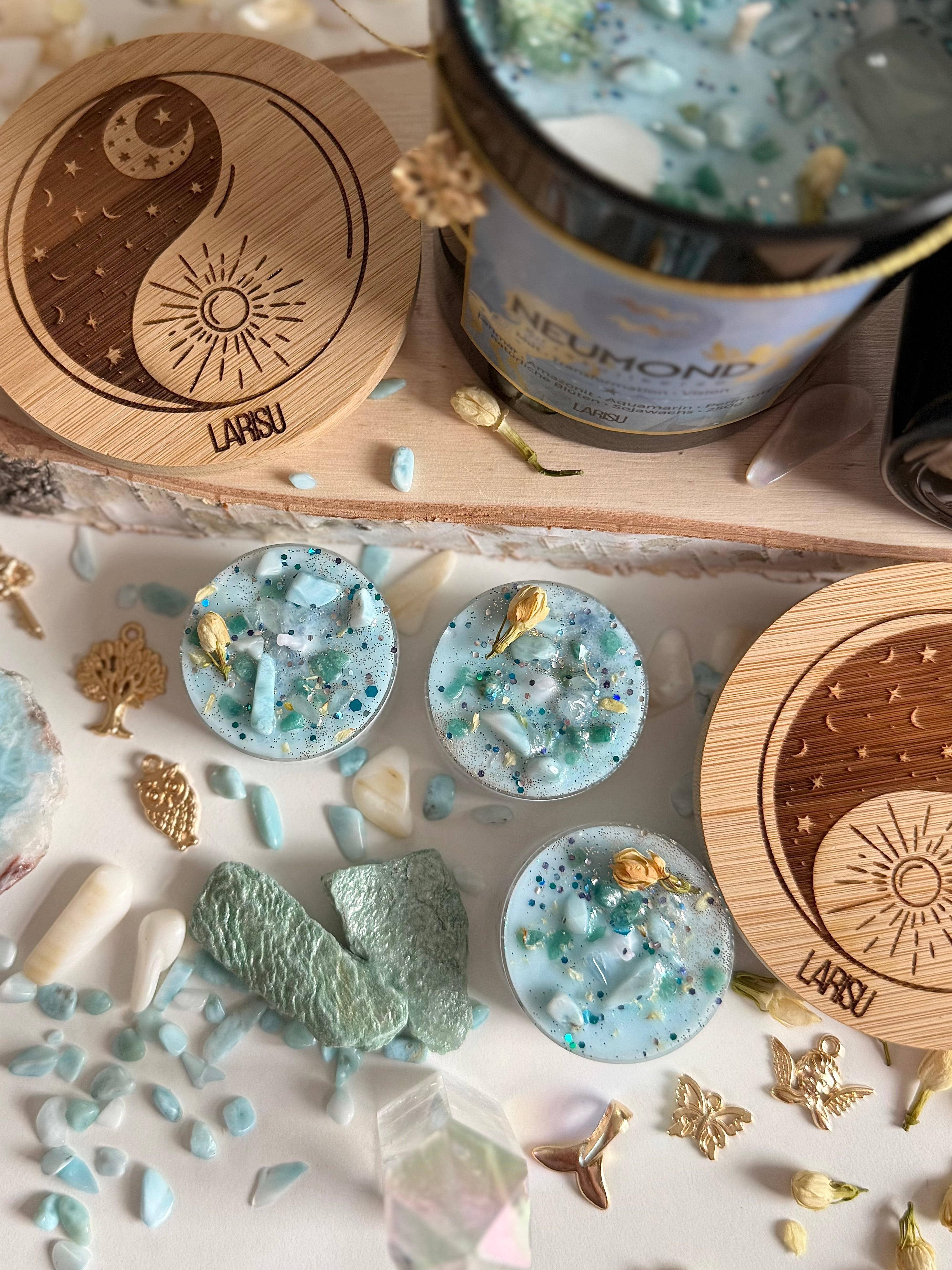 Moonlights Teelicht „Meditation“ mit Aventurin, Rosenquarz und Bergkristall