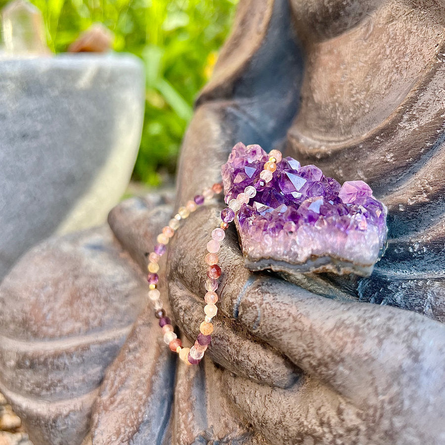 Armband „Selbstliebe“ mit Rosenquarz, Rhodonit, rosa Andenopal, rosa Turmalin und Granat