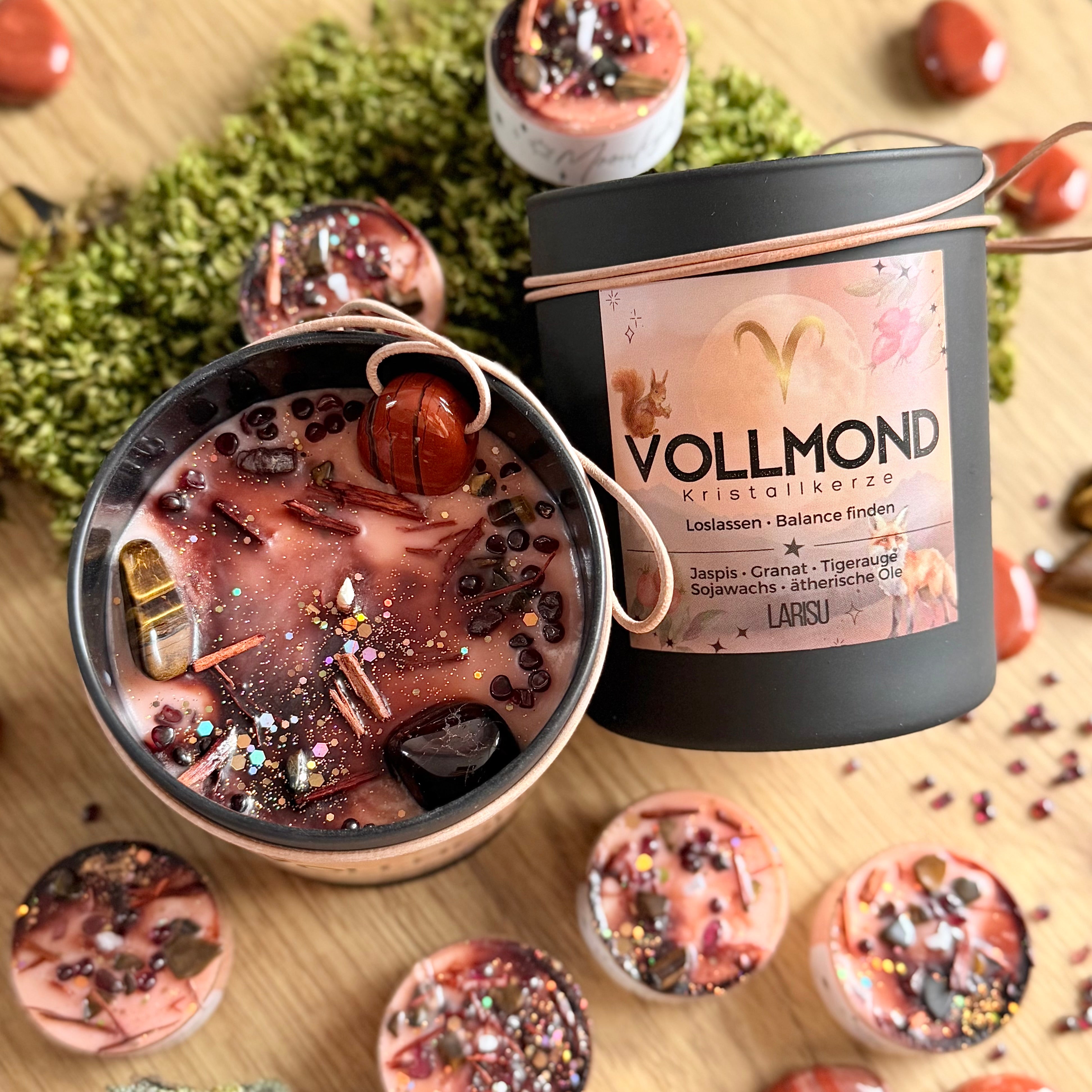 Kristallkerze Lieblingsmensch mit Rosenquarz und Granat