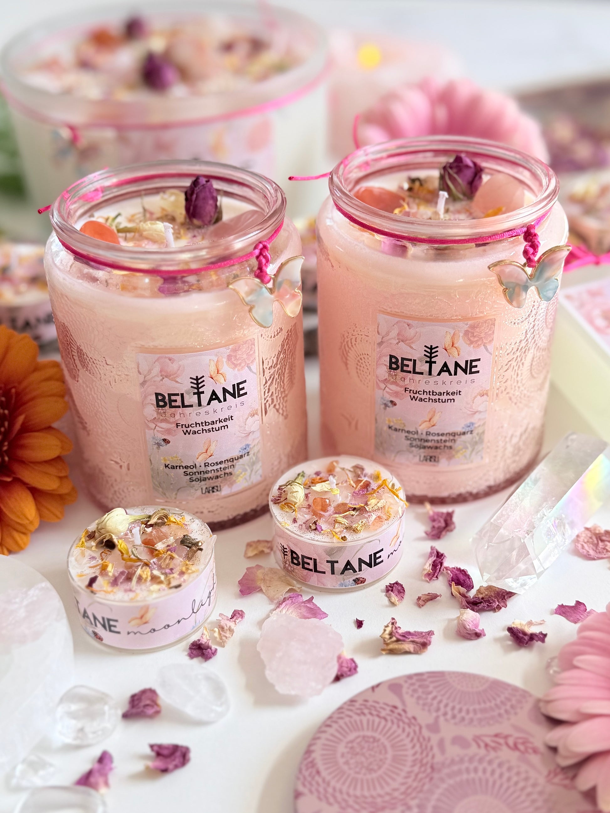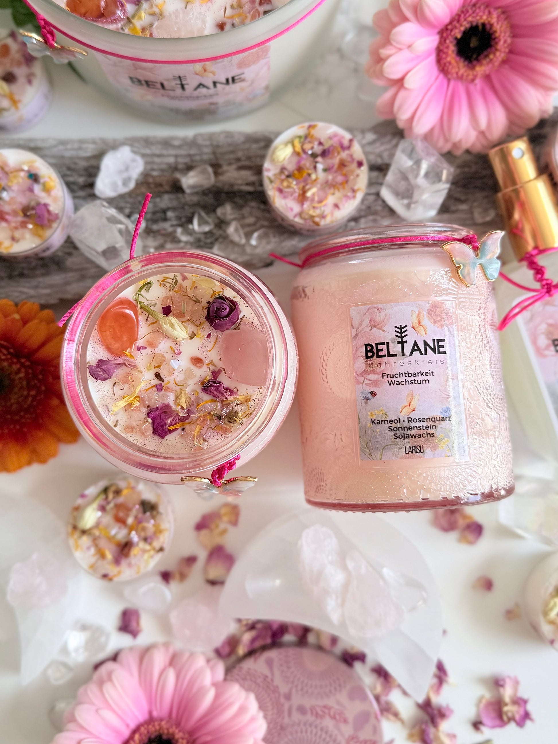 Diese Beltane Kristallkerze ist dem Jahreskreisfest des Wachstums, der Lebensfreude und der Fruchtbarkeit gewidmet, welches wir um den 1. Mai feiern.