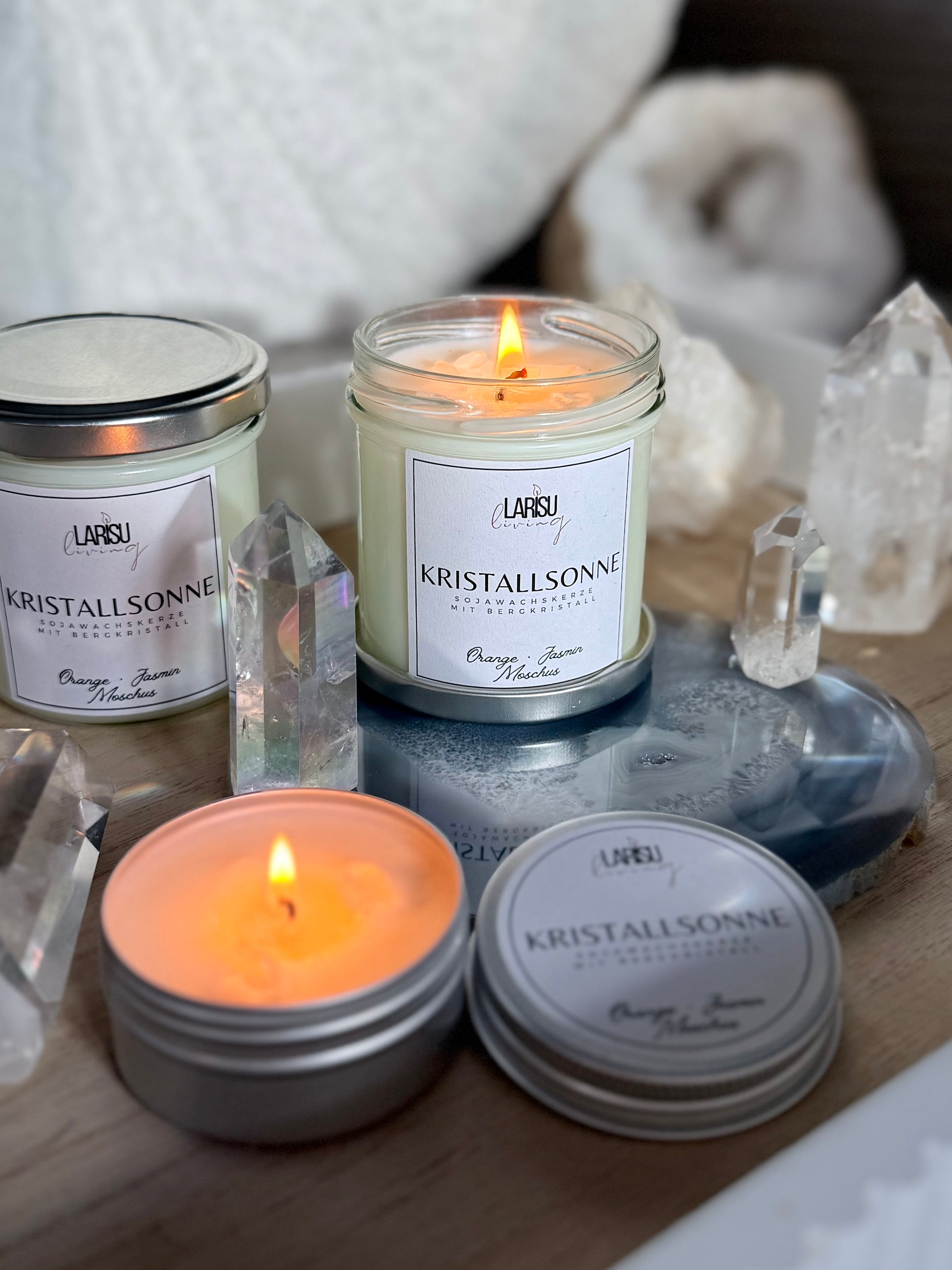 Kerze immer so lange brennen lassen, bis ein gleichmäßiger Wachsfilm an der Oberfläche entsteht. Vor dem erneuten Anzünden, den Docht bis auf 0,5cm kürzen, dann hast du immer eine ruhige Flamme.