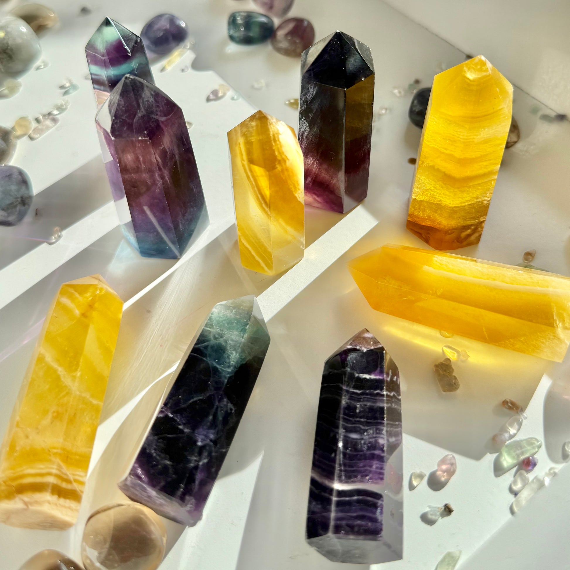 Hübsche Fluorit Spitze, poliert und mit Standfläche. Ca. 6-8cm. 1 Stück